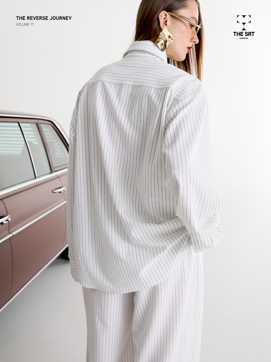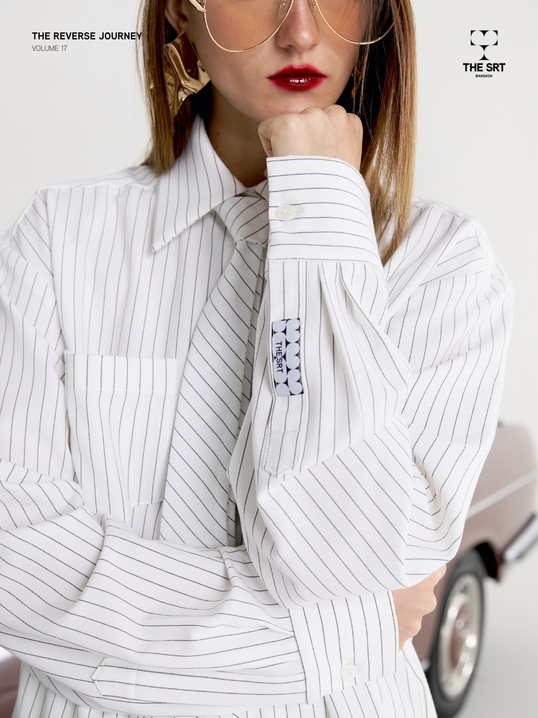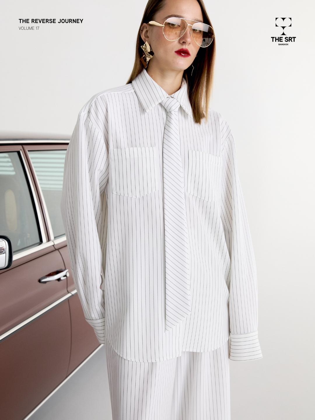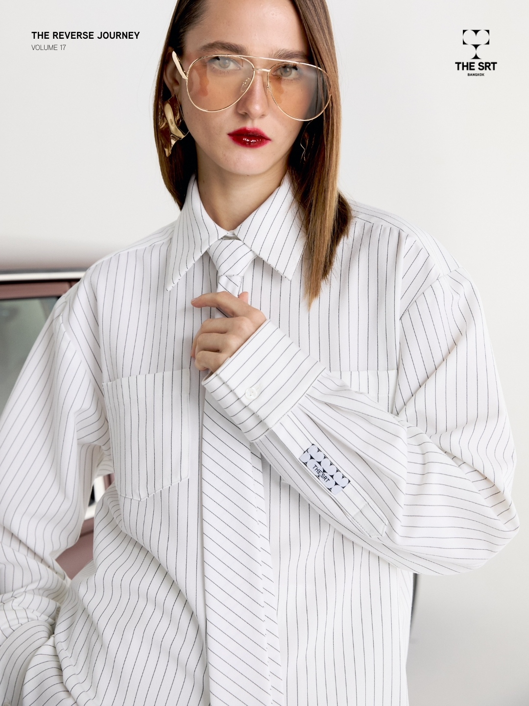 เสื้อเชิ้ตลายทางพร้อมเนคไท ดีไซน์ทรงโอเวอร์ไซส์