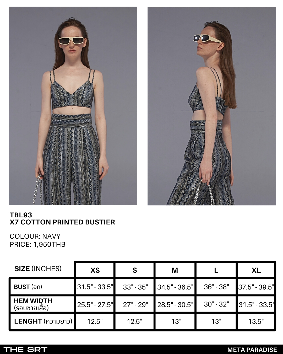 เสื้อครอปสายเดี่ยวสีน้ำเงิน 2 เลเยอร์ พิมพ์ลายซิกแซก