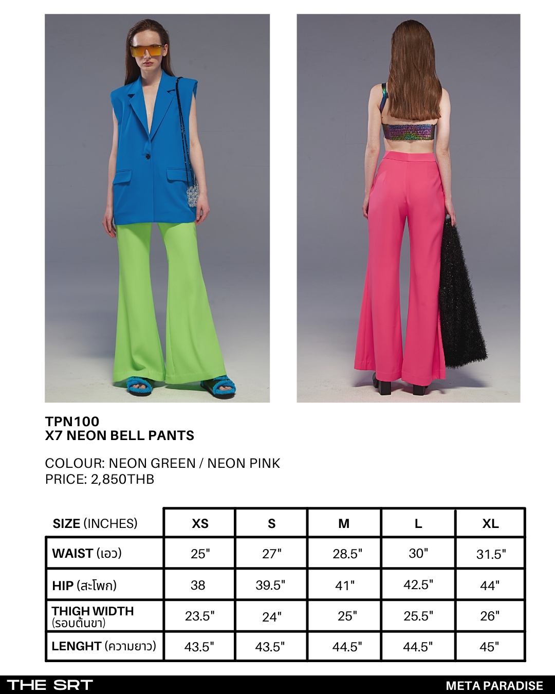 กางเกงเอวสูงขายาวทรงขากระดิ่ง ซิปหน้า มีกระดุมหน้า และกระเป๋า 2 ข้าง